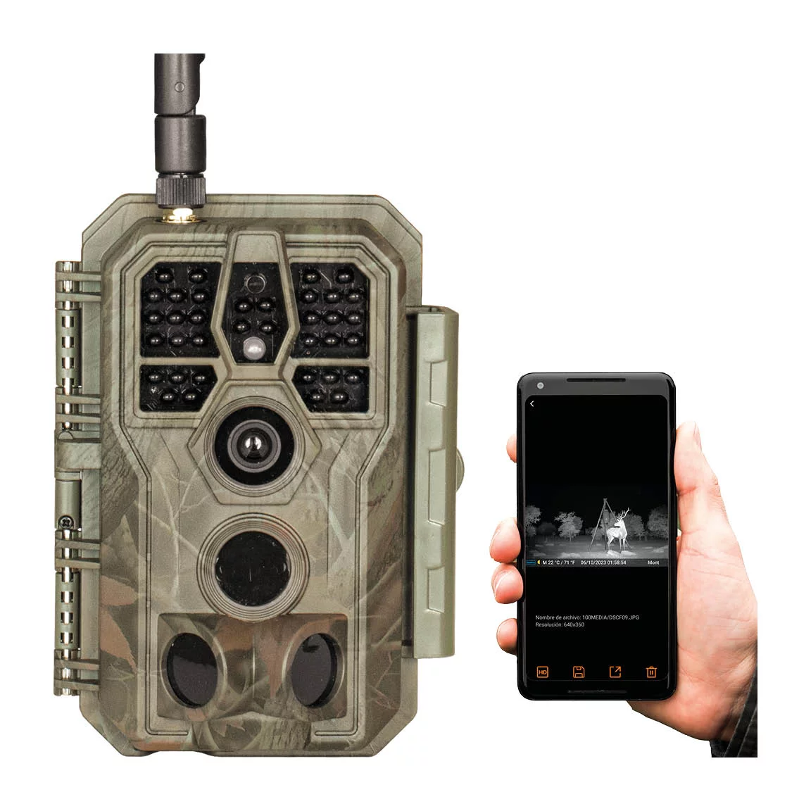 La cámara de caza GardePro X50 destaca por incorporar envío de imágenes al móvil a través de la App GardePro Mobile disponible para iOS y Android, permitiendo controlar remotamente múltiples cámaras desde la misma App y desde más de un dispositivo móvil, contando con una conexión fácil y rápida. Equipa la última e innovadora tecnología de visión nocturna inteligente, reduciendo el desenfoque y el ruido generando una mayor calidad de imagen, optimizando incluso el consumo de energía de forma eficiente, lo que la convierte en la cámara trail o trailcam perfecta para su uso en zonas sin electricidad ni Wi-Fi.