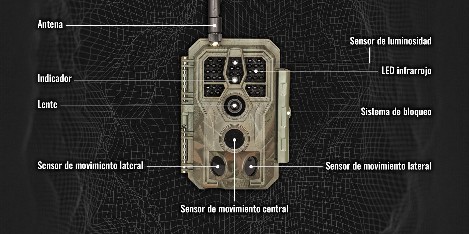 Mediante sus 3 sensores de movimiento detecta actividad en un ángulo de 120º en una distancia de hasta 27 m. Captura foto a 32 Mpx y vídeo en 1080p con sonido, en 70º FOV, incluso en completa oscuridad gracias a su iluminador infrarrojo invisible con alcance de hasta 30 m. Permite previsualizar las imágenes captadas y configurar todos sus parámetros de forma sencilla gracias a su pantalla de 2,4″ a color, escogiendo además entre los modos detección, timelapse e híbrido. Su autonomía de aproximadamente 4 meses (2.000 fotografías según la configuración) aporta seguridad y despreocupación.