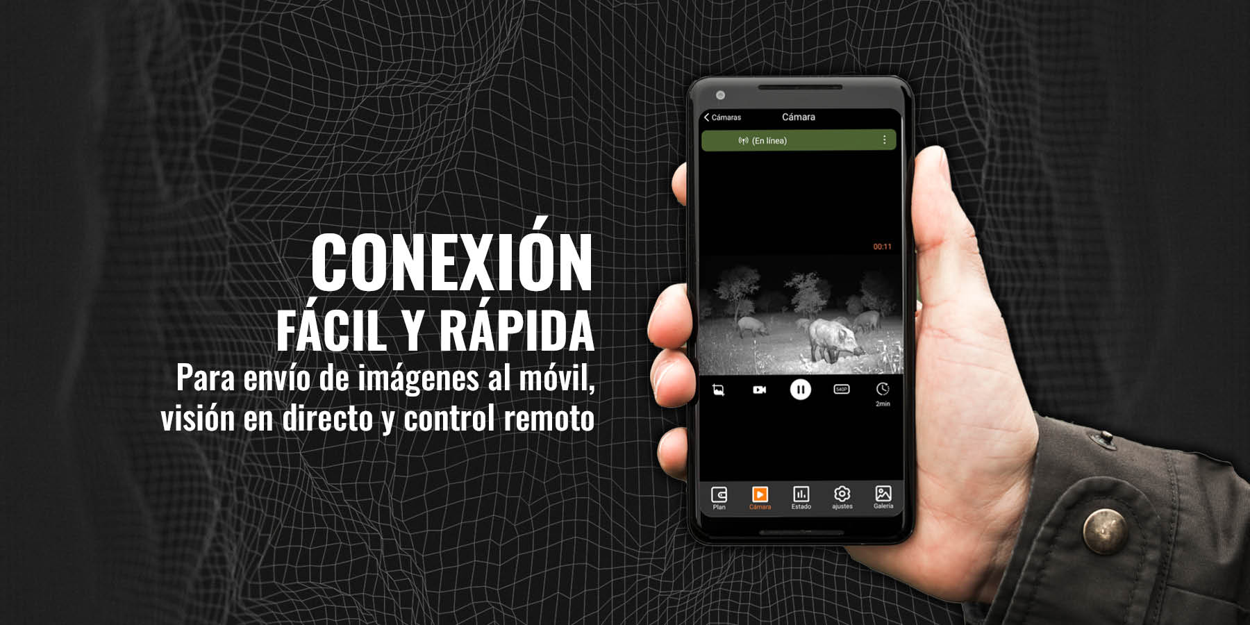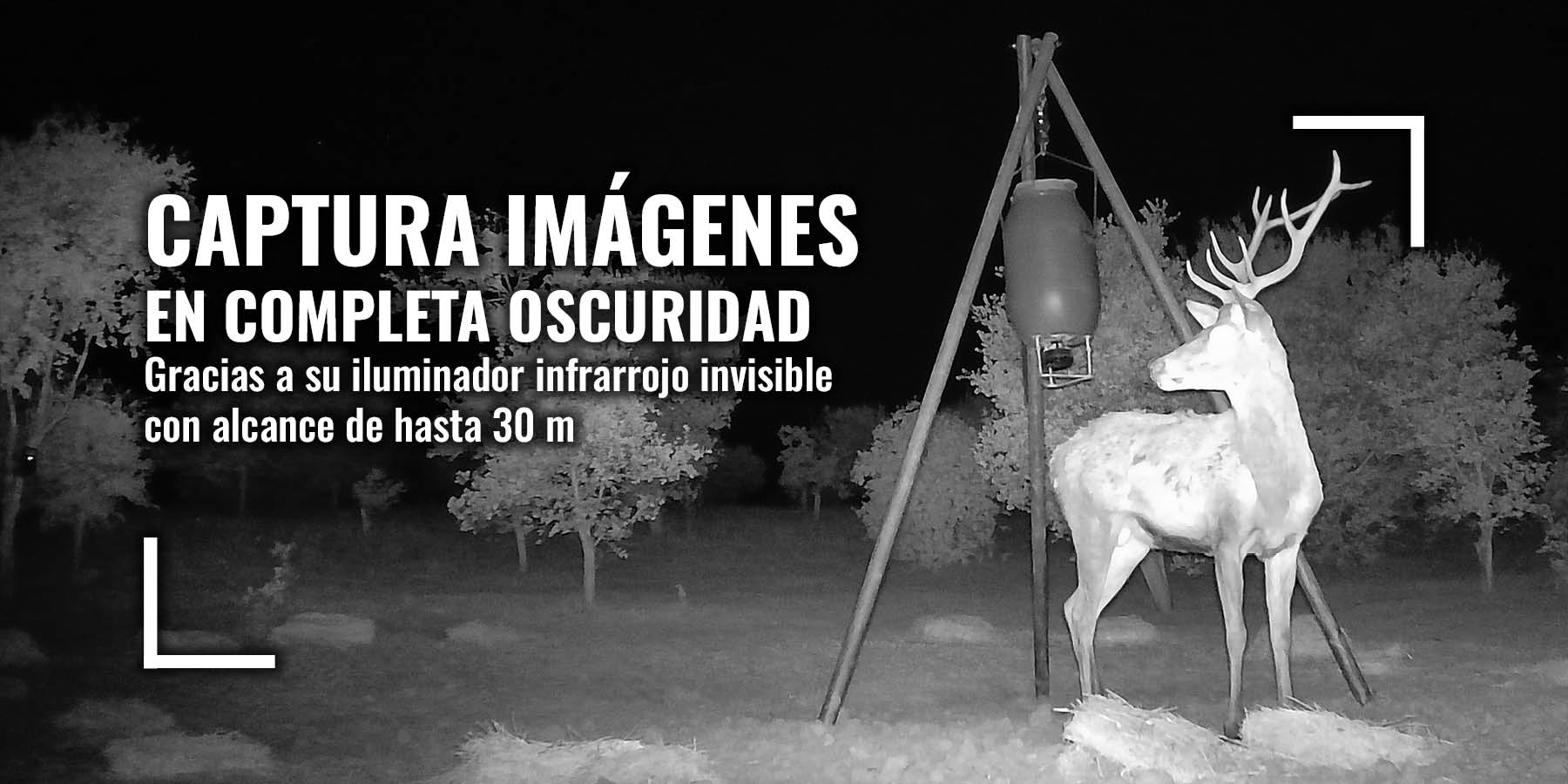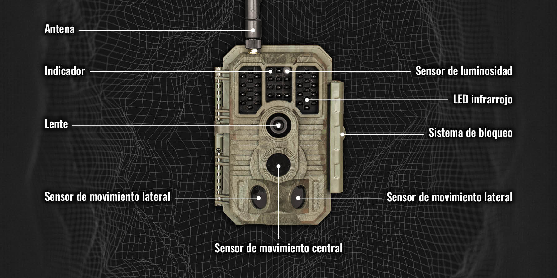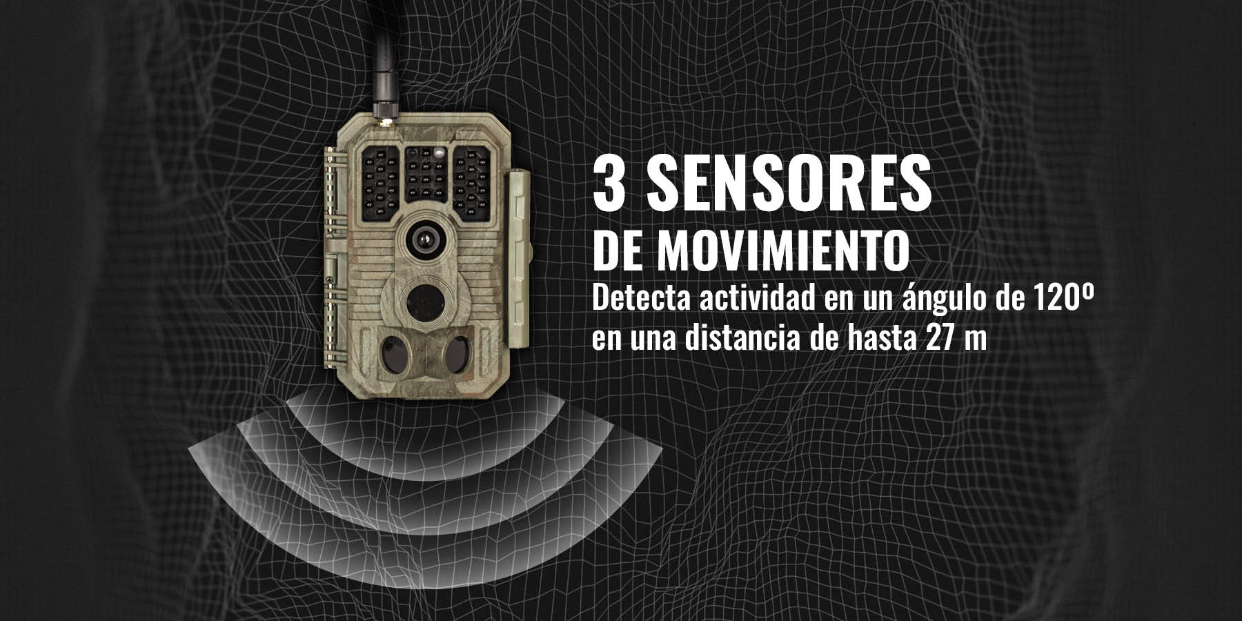 Mediante sus 3 sensores de movimiento detecta actividad en un ángulo de 120º en una distancia de hasta 27 m. Captura foto a 48 Mpx y vídeo en 1080p con sonido, en 70º FOV, incluso en completa oscuridad gracias a su iluminador infrarrojo invisible con alcance de hasta 30 m. Permite previsualizar las imágenes captadas y configurar todos sus parámetros de forma sencilla gracias a su pantalla de 2,4″ a color, escogiendo además entre los modos detección, timelapse e híbrido. Su autonomía de aproximadamente 6 meses (3.000 fotografías según la configuración) aporta seguridad y despreocupación.
