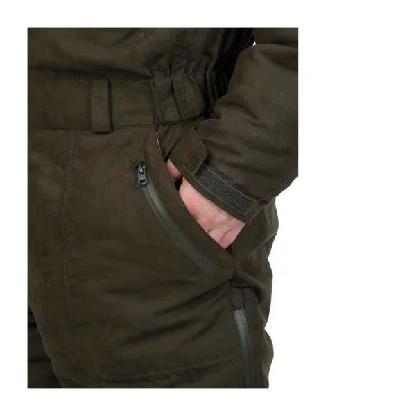 El mono de caza para esperas Hart Oakland 02 verde es adecuado para otoño e invierno. Está indicado para esperas y aguardos con tiempo frío, gracias a su calidez, e impermeabilidad sin renunciar a la transpirabilidad, evitando un calor excesivo y la acumulación de humedad.