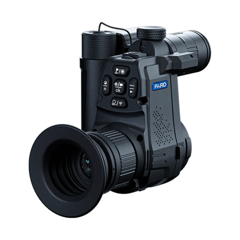 Este visor nocturno acoplable está fabricado en aluminio AL6061 y materiales composite, lo que garantiza una construcción resistente y ligera (355 g con telémetro). Con su certificación IP67, el dispositivo es resistente al agua y al polvo, asegurando un funcionamiento fiable en los entornos más exigentes. El PARD NV007SP2 4K LRF incluye grabación de vídeo en alta definición con activación automática por retroceso, conectividad Wi-Fi para transmisión en tiempo real y almacenamiento mediante tarjeta microSD de hasta 128 GB. Todo esto lo convierte en uno de los mejores visores nocturnos clip-on del mercado para los usuarios que buscan calidad, tecnología avanzada y facilidad de uso.